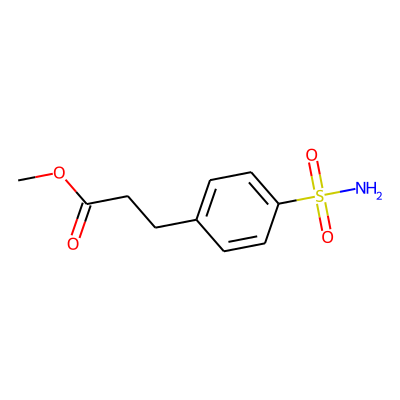COC(=O)CCc1ccc(S(N)(=O)=O)cc1| HBA: | 5 | RingCount: | 1 |