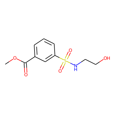 COC(=O)c1cccc(S(=O)(=O)NCCO)c1| HBA: | 6 | RingCount: | 1 |