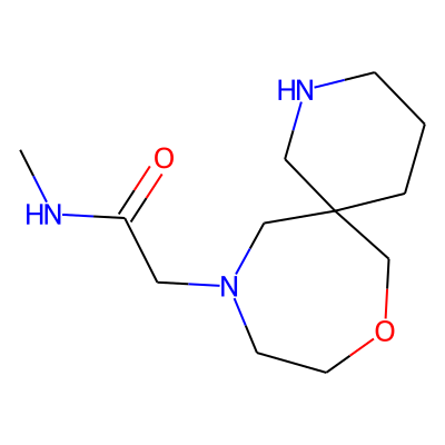 CNC(=O)CN1CCOCC2(CCCNC2)C1| HBA: | 5 | RingCount: | 2 |