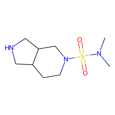 CN(C)S(=O)(=O)N1CCC2CNCC2C1| HBA: | 5 | RingCount: | 2 |
