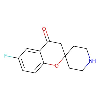 O=C1CC2(CCNCC2)Oc2ccc(F)cc21| HBA: | 3 | RingCount: | 3 |
