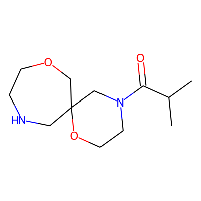 CC(C)C(=O)N1CCOC2(CNCCOC2)C1| HBA: | 5 | RingCount: | 2 |