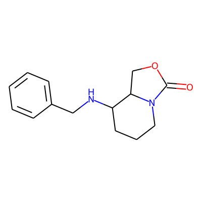 O=C1OCC2C(NCc3ccccc3)CCCN12| HBA: | 4 | RingCount: | 3 |