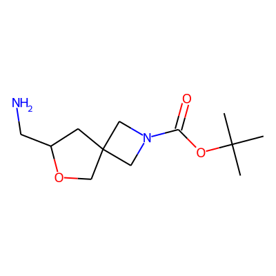 CC(C)(C)OC(=O)N1CC2(COC(CN)C2)C1| HBA: | 5 | RingCount: | 2 |