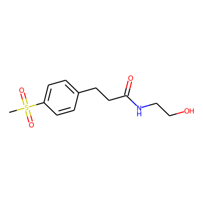 CS(=O)(=O)c1ccc(CCC(=O)NCCO)cc1Sugarmoiety: