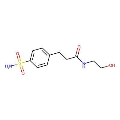 NS(=O)(=O)c1ccc(CCC(=O)NCCO)cc1| HBA: | 6 | RingCount: | 1 |