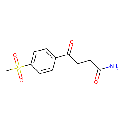 CS(=O)(=O)c1ccc(C(=O)CCC(N)=O)cc1| HBA: | 5 | RingCount: | 1 |