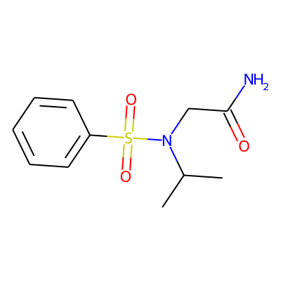 CC(C)N(CC(N)=O)S(=O)(=O)c1ccccc1| HBA: | 5 | RingCount: | 1 |