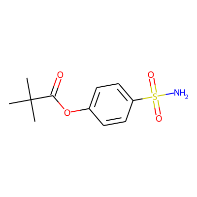 CC(C)(C)C(=O)Oc1ccc(S(N)(=O)=O)cc1| HBA: | 5 | RingCount: | 1 |