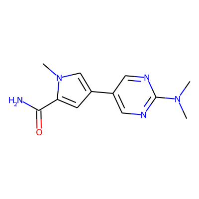 CN(C)c1ncc(-c2cc(C(N)=O)n(C)c2)cn1| HBA: | 6 | RingCount: | 2 |
