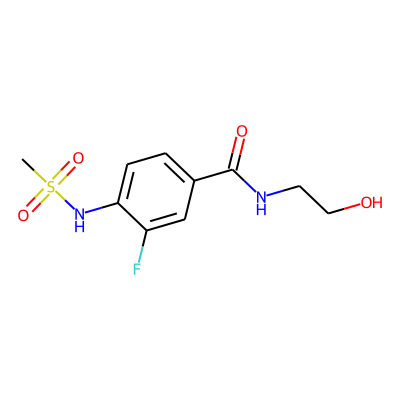 CS(=O)(=O)Nc1ccc(C(=O)NCCO)cc1FSugarmoiety: