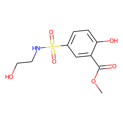 COC(=O)c1cc(S(=O)(=O)NCCO)ccc1O| HBA: | 7 | RingCount: | 1 |