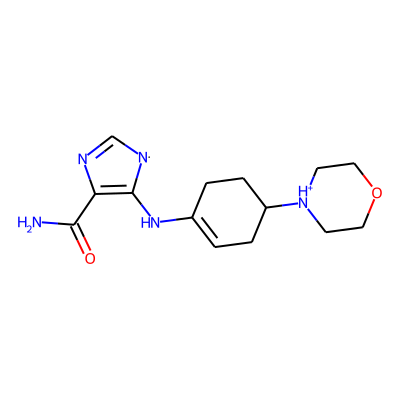 NC(=O)C1=C(NC2=CCC([NH+]3CCOCC3)CC2)[N]C=N1| HBA: | 7 | RingCount: | 3 |