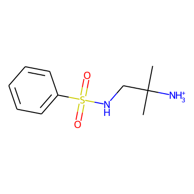 CC(C)([NH3+])CNS(=O)(=O)c1ccccc1| HBA: | 4 | RingCount: | 1 |