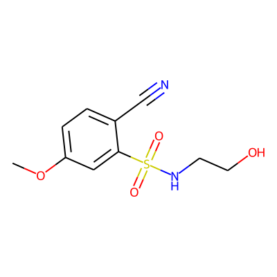COc1ccc(C#N)c(S(=O)(=O)NCCO)c1| HBA: | 6 | RingCount: | 1 |