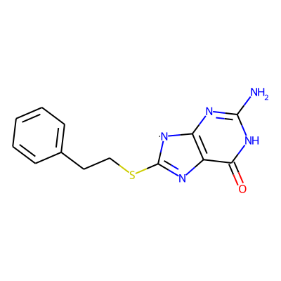 Nc1nc2c(c(=O)[nH]1)N=C(SCCc1ccccc1)[N]2| HBA: | 6 | RingCount: | 3 |
