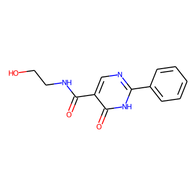 O=C(NCCO)c1cnc(-c2ccccc2)[nH]c1=O| HBA: | 6 | RingCount: | 2 |