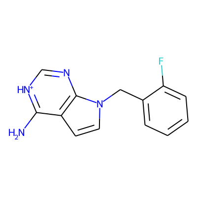 Nc1[nH+]cnc2c1ccn2Cc1ccccc1F| HBA: | 4 | RingCount: | 3 |