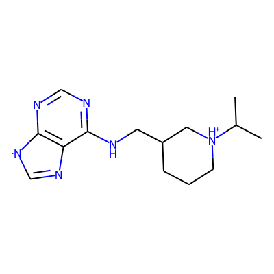 CC(C)[NH+]1CCCC(CNc2ncnc3c2N=C[N]3)C1| HBA: | 6 | RingCount: | 3 |