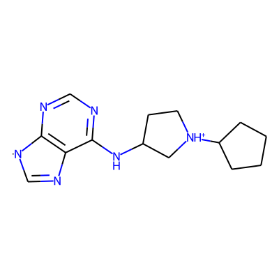 C1=Nc2c(ncnc2NC2CC[NH+](C3CCCC3)C2)[N]1| HBA: | 6 | RingCount: | 4 |