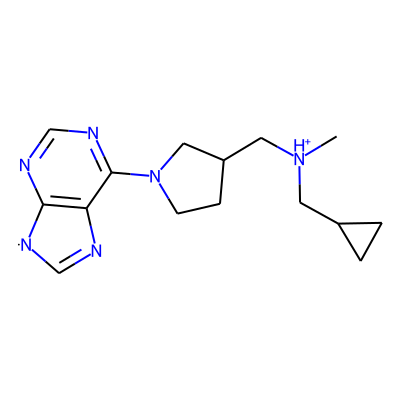 C[NH+](CC1CC1)CC1CCN(c2ncnc3c2N=C[N]3)C1Sugarmoiety: