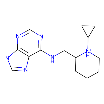 C1=Nc2c(ncnc2NCC2CCCC[NH+]2C2CC2)[N]1| HBA: | 6 | RingCount: | 4 |