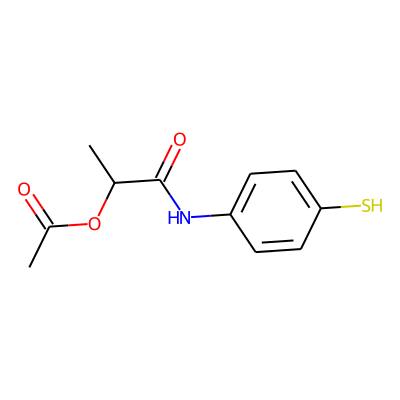 CC(=O)OC(C)C(=O)Nc1ccc(S)cc1| HBA: | 4 | RingCount: | 1 |