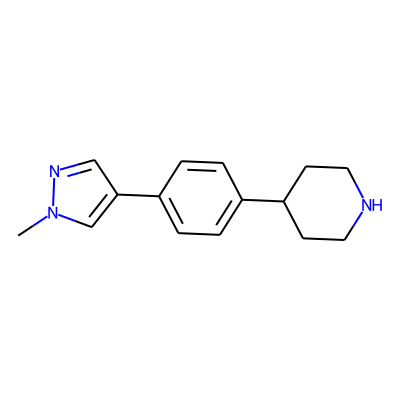 Cn1cc(-c2ccc(C3CCNCC3)cc2)cn1| HBA: | 3 | RingCount: | 3 |