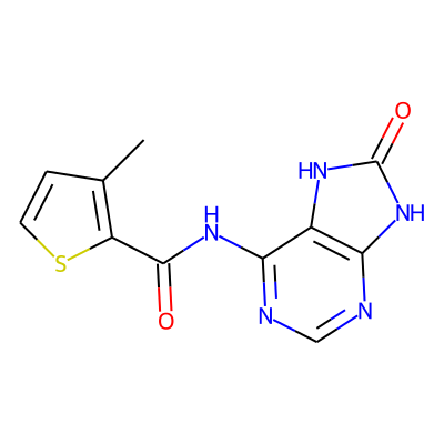 Cc1ccsc1C(=O)Nc1ncnc2[nH]c(=O)[nH]c12| HBA: | 7 | RingCount: | 3 |