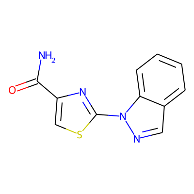 NC(=O)c1csc(-n2ncc3ccccc32)n1| HBA: | 5 | RingCount: | 3 |