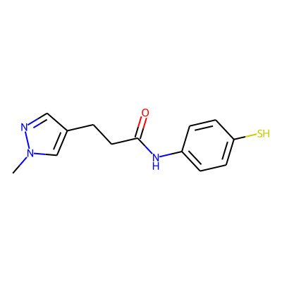 Cn1cc(CCC(=O)Nc2ccc(S)cc2)cn1| HBA: | 4 | RingCount: | 2 |