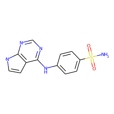 NS(=O)(=O)c1ccc(Nc2ncnc3c2C=C[N]3)cc1| HBA: | 7 | RingCount: | 3 |
