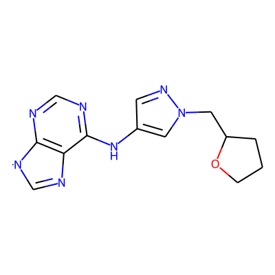 C1=Nc2c(ncnc2Nc2cnn(CC3CCCO3)c2)[N]1| HBA: | 8 | RingCount: | 4 |