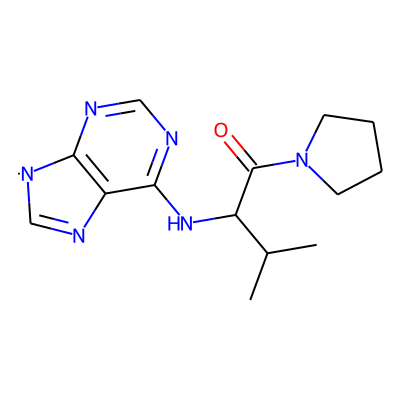 CC(C)C(Nc1ncnc2c1N=C[N]2)C(=O)N1CCCC1| HBA: | 7 | RingCount: | 3 |