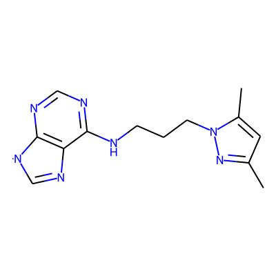 Cc1cc(C)n(CCCNc2ncnc3c2N=C[N]3)n1| HBA: | 7 | RingCount: | 3 |