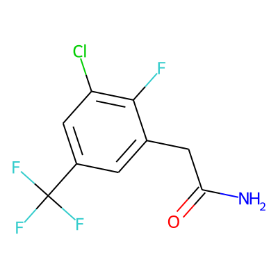 NC(=O)Cc1cc(C(F)(F)F)cc(Cl)c1F| HBA: | 2 | RingCount: | 1 |