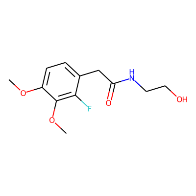 COc1ccc(CC(=O)NCCO)c(F)c1OC| HBA: | 5 | RingCount: | 1 |