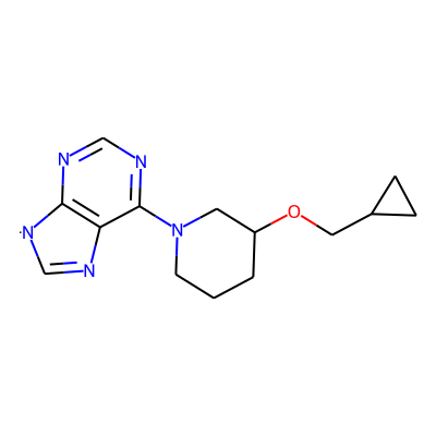 C1=Nc2c(ncnc2N2CCCC(OCC3CC3)C2)[N]1| HBA: | 6 | RingCount: | 4 |