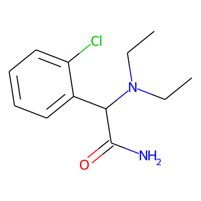 CCN(CC)C(C(N)=O)c1ccccc1Cl| HBA: | 3 | RingCount: | 1 |