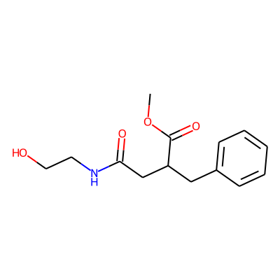 COC(=O)C(CC(=O)NCCO)Cc1ccccc1| HBA: | 5 | RingCount: | 1 |