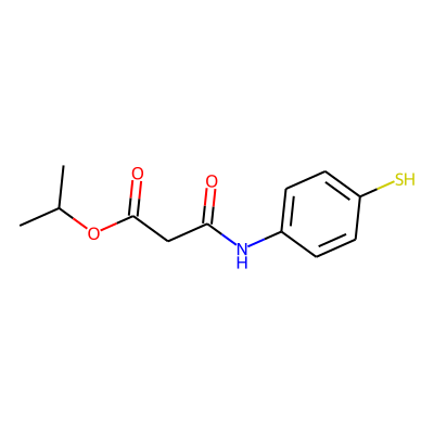 CC(C)OC(=O)CC(=O)Nc1ccc(S)cc1| HBA: | 4 | RingCount: | 1 |