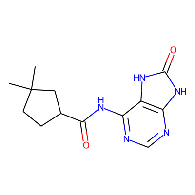 CC1(C)CCC(C(=O)Nc2ncnc3[nH]c(=O)[nH]c23)C1| HBA: | 7 | RingCount: | 3 |