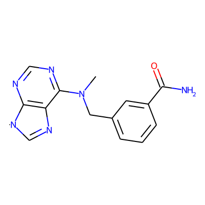 CN(Cc1cccc(C(N)=O)c1)c1ncnc2c1N=C[N]2| HBA: | 7 | RingCount: | 3 |