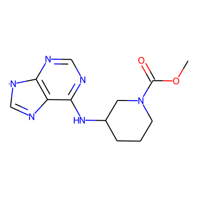 COC(=O)N1CCCC(Nc2ncnc3c2N=C[N]3)C1| HBA: | 8 | RingCount: | 3 |