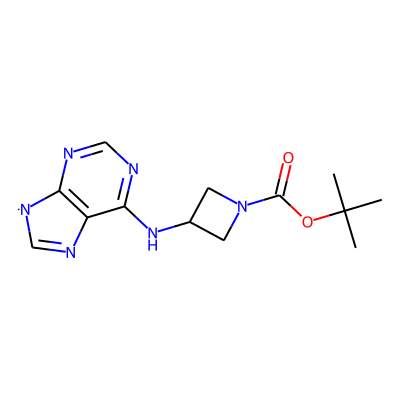 CC(C)(C)OC(=O)N1CC(Nc2ncnc3c2N=C[N]3)C1| HBA: | 8 | RingCount: | 3 |
