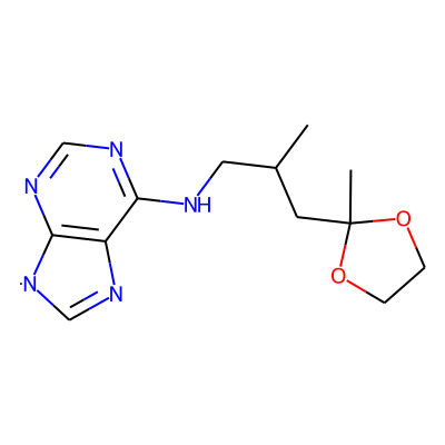 CC(CNc1ncnc2c1N=C[N]2)CC1(C)OCCO1| HBA: | 7 | RingCount: | 3 |