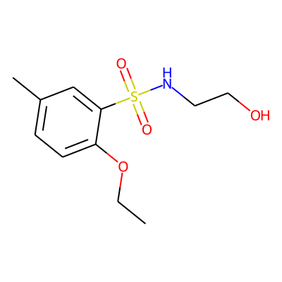 CCOc1ccc(C)cc1S(=O)(=O)NCCO| HBA: | 5 | RingCount: | 1 |