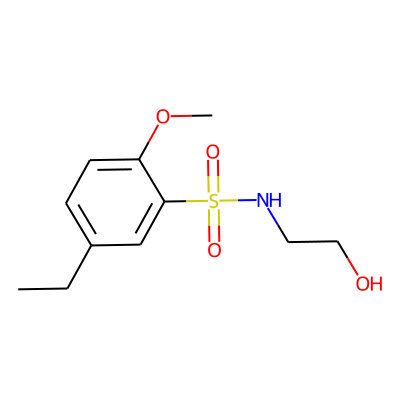 CCc1ccc(OC)c(S(=O)(=O)NCCO)c1| HBA: | 5 | RingCount: | 1 |