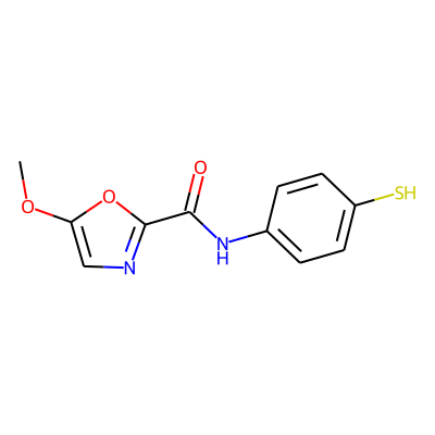 COc1cnc(C(=O)Nc2ccc(S)cc2)o1| HBA: | 5 | RingCount: | 2 |