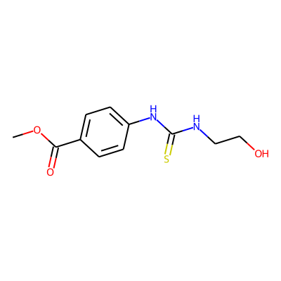 COC(=O)c1ccc(NC(=S)NCCO)cc1| HBA: | 5 | RingCount: | 1 |